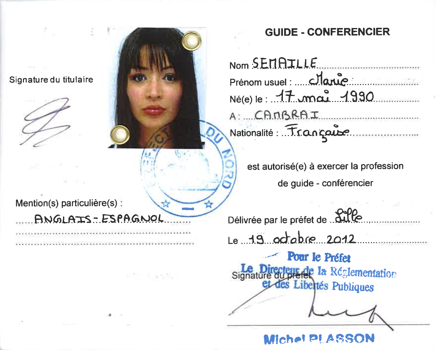 Détentrice de la carte nationale française et reconnue par le Ministère du Tourisme italien pour l'année en cours​